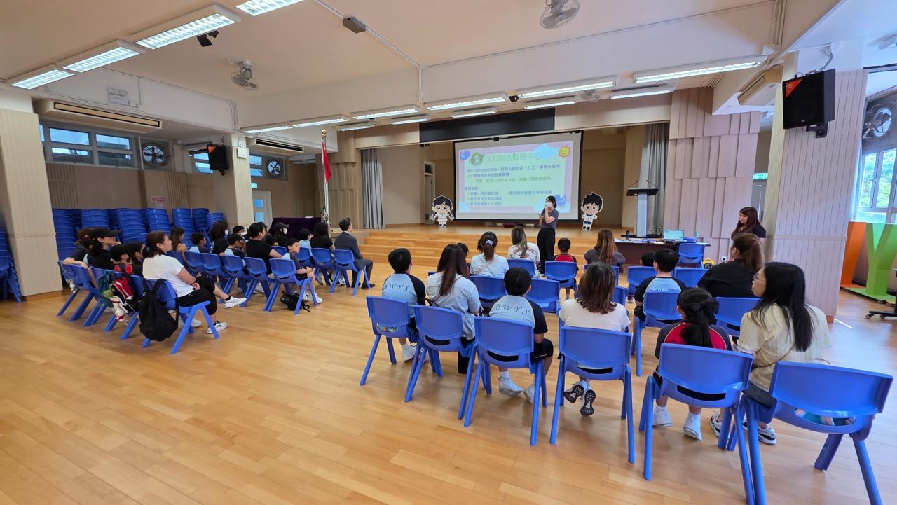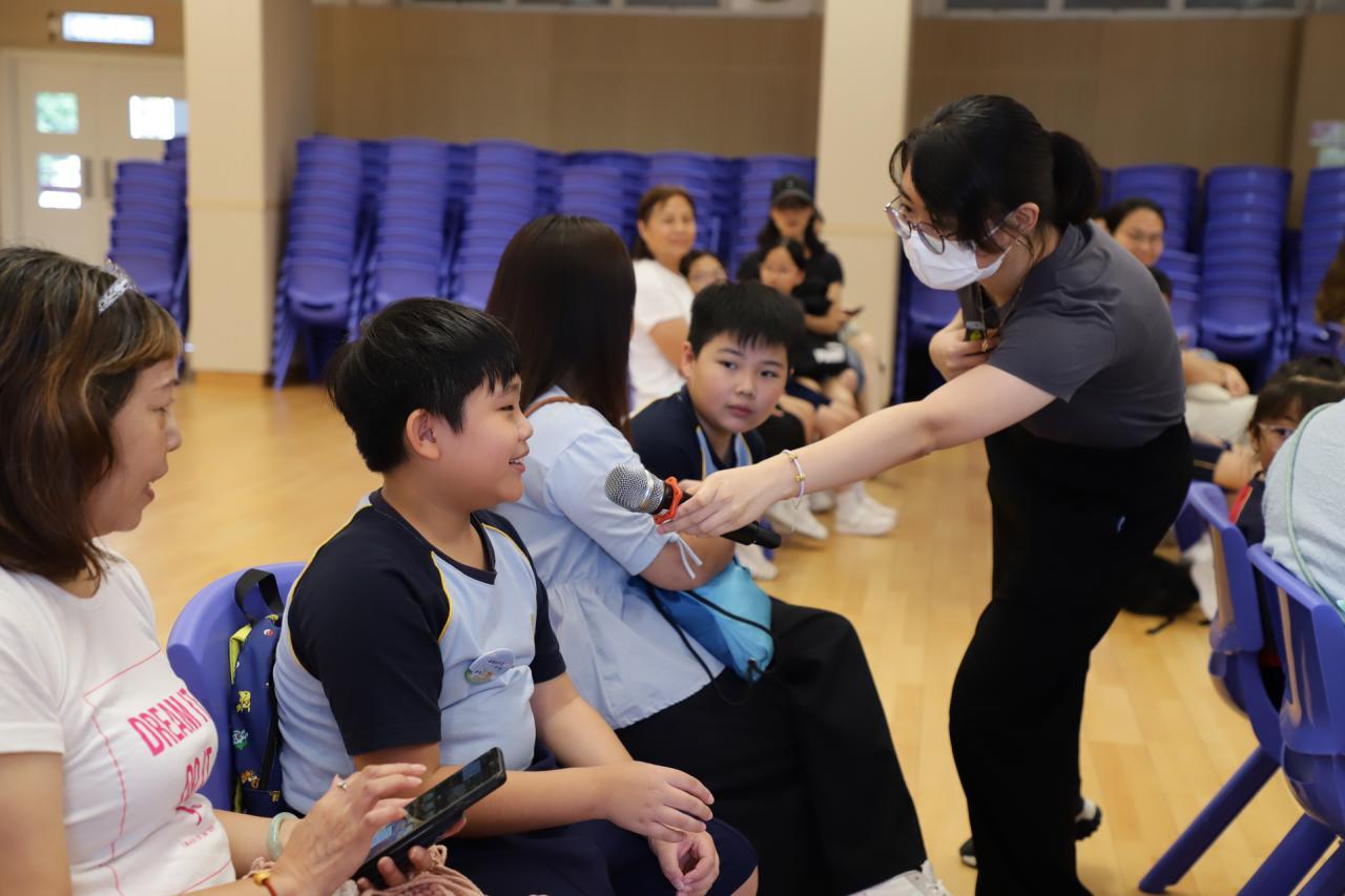 四年級學生及家長投入參與迎新及啟動禮,耐心聆聽孫校長的勉勵詞,學生亦認真地參與宣誓,讓校長、社工及家長們都感受到他們已經準備好參與成長的天空計劃。