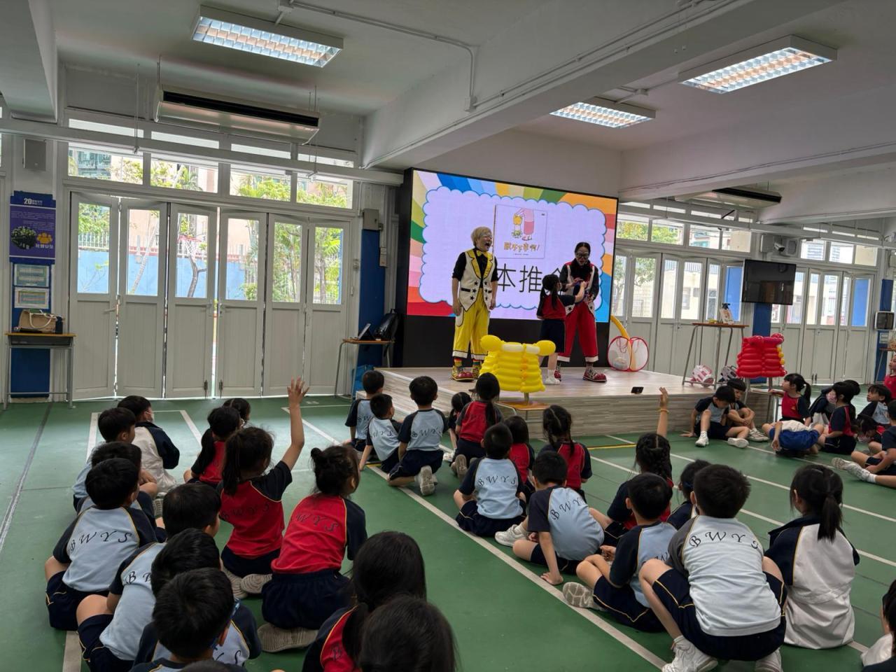2026-04-28 早前,一、二年同學於閱讀課觀賞了一場與繪本《脫不下來啊》的表演。小丑演教員用氣球做出七彩繽紛的道具加上故事的形式帶領同學們看看繪本中的主角因為脫不下衣服引發一連串爆笑事情,實則充滿了天馬行空的想像力。對孩子來說,這件事情不僅貼近他們的生活經驗,還說出了他們曾有過的想法呢! 閱讀推廣
