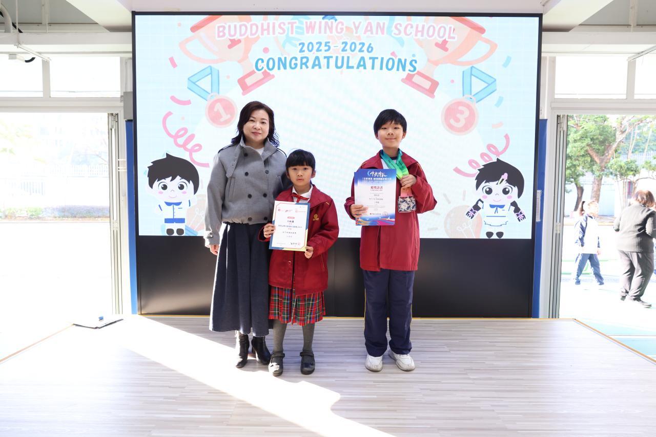 2026-01-05 恭賀本校 2C 呂懿毊 同學於 全港公開兒童國術分齡賽2025 中獲取 女子幼童組套拳 二等獎 佳績恭賀本校 6D 鄧天浚 同學於 『中武傳承』香港國際武術大賽 中獲取 男子C組初級南拳 二等獎 佳績恭賀本校 6D 鄧天浚 同學於 『中武傳承』香港國際武術大賽 中獲取 男子C組初級短器械 二等獎 佳績 榮譽榜