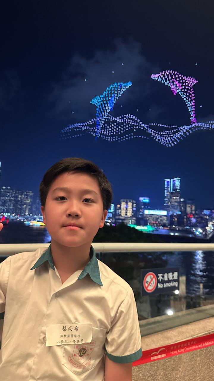 2026-04-17 本校學生參加教育局舉辦的「全港學界無人機表演構圖創作比賽」,獲得小組優異獎。校長、老師、得獎同學及家長於早前獲邀到香港會議展覽中心觀賞無人機表演;本校同學的作品亦被投放到空中,讓香港市民一同欣賞。同學認為活動十分有意義,因為這活動不但能提升他們的藝術創作技巧,作品更能在天空中呈現,使他們感到無比自豪,他們的努力亦獲得充份的肯定。 國民教育及德公組