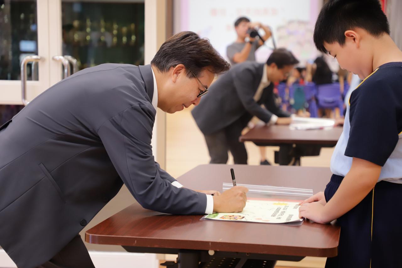 四年級學生及家長投入參與迎新及啟動禮,耐心聆聽孫校長的勉勵詞,學生亦認真地參與宣誓,讓校長、社工及家長們都感受到他們已經準備好參與成長的天空計劃。